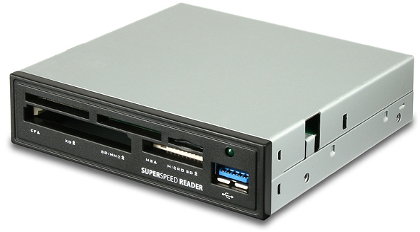 Univerzální čtečka karet, která se připojuje do interního USB 3.0 konektoru na základní desce pro maximální rychlost práce s paměťovými kartami. Čtečka čte všechny běžné typy paměťových karet. Čtečka nese jeden USB 3.0 konektor, který bude přístupný na čele skříně.