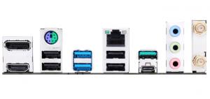 Zezadu má počítač konektory 1x USB 3.2 (20Gbps, 1x typ C), 1x USB 3.1 (10Gbps), 2x USB 3.0 (5Gbps), 2x USB 2.0, 1x PS/2, 2,5x Gbit síť, optický výstup a Jack konektory pro až 7.1 reproduktory, výstupy případné integrované grafiky (HDMI, DisplayPort).