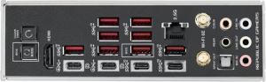 Zezadu má počítač konektory 2x USB 4 (40Gbps, typ C), 1x USB 3.2 (20Gbps, typ C), 9x USB 3.1 (10Gbps, 8x typ A, 1y typ C), 1x 2,5Gbit síť, optický výstup a Jack výstupy pro až 7.1 reproduktory, výstupy integrované grafiky (HDMI).